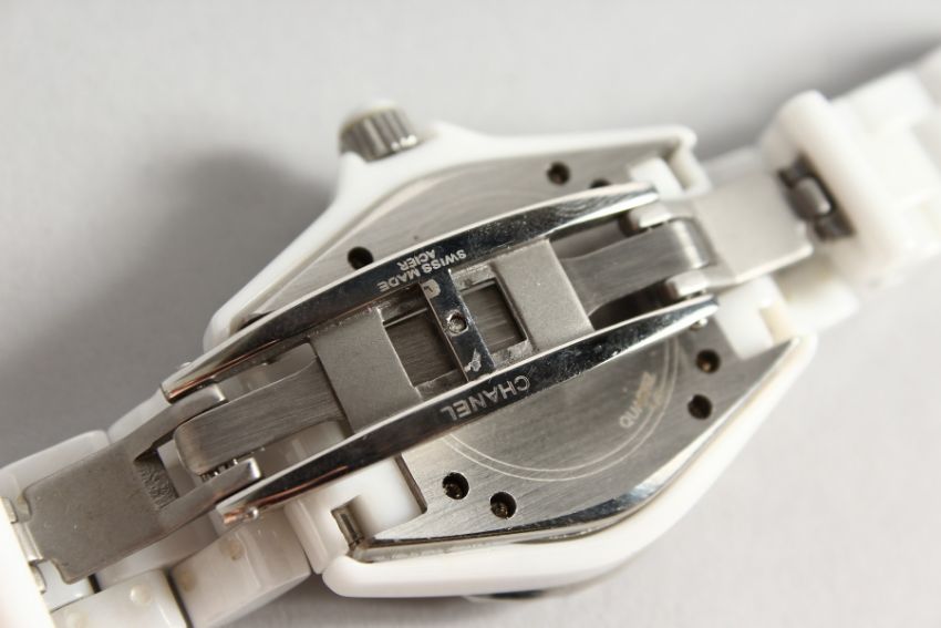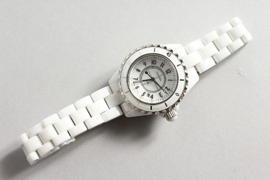 A CHANEL WHITE WRISTWATCH, No. DE 21011.