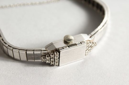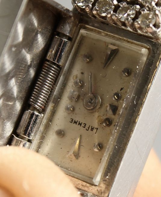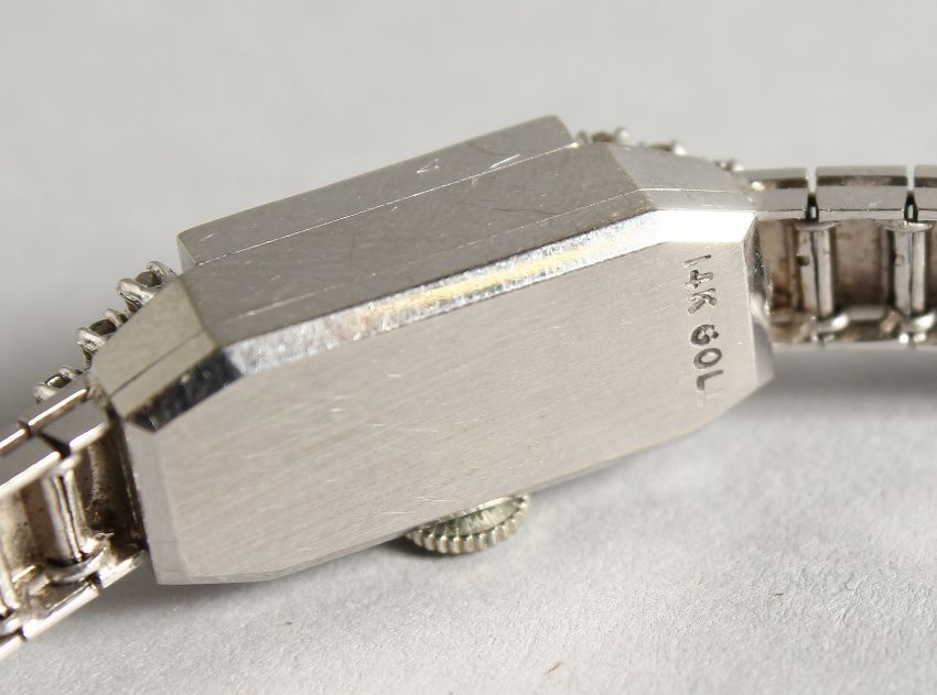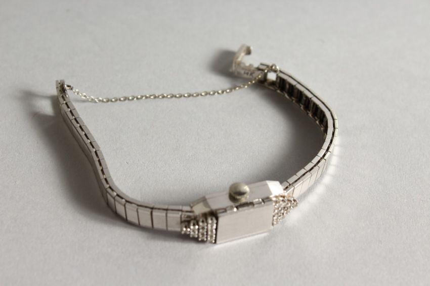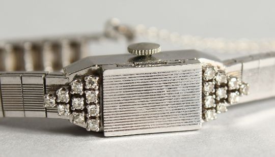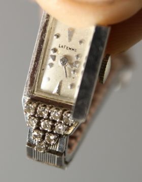 LA FEMME, A LADIES' 14CT WHITE GOLD AND DIAMOND COCKTAIL WATCH, with hinged cover.