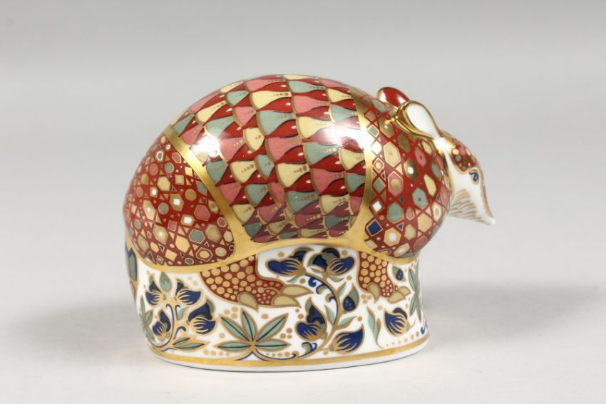 A ROYAL CROWN DERBY PAPERWEIGHT ARMADILLO, gold stopper and box.
