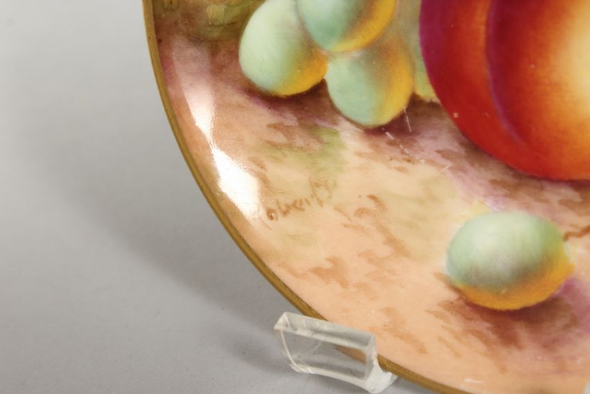 A ROYAL WORCESTER SMALL DISH painted with fruit by Robert. signed. date code 1937.