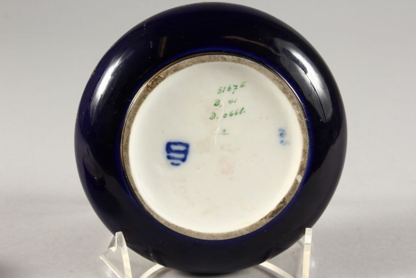 A VICTORIAN BLUE CIRCULAR POWDER BOWL AND COVER, the lid with classical figures.