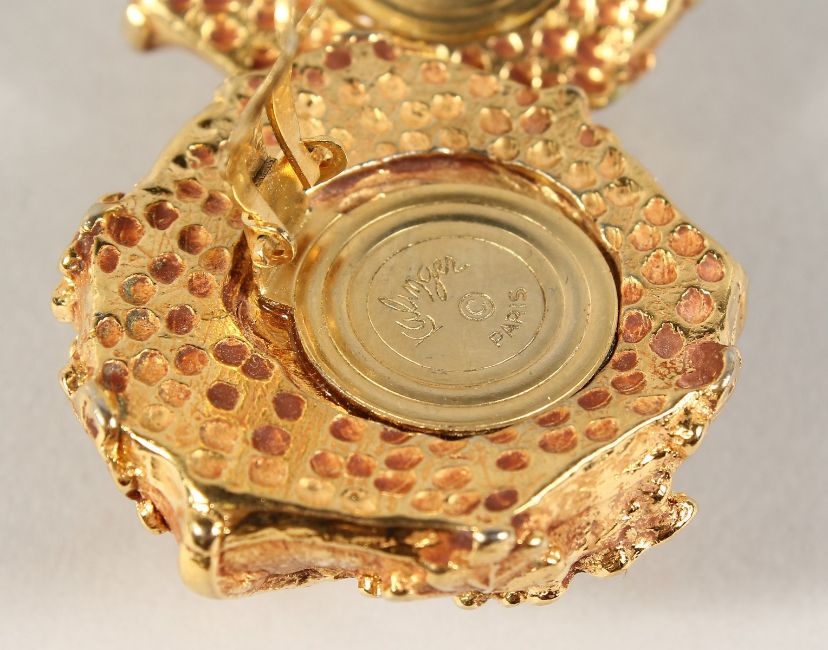 A PAIR OF KALINGER GILT OAK LEAF EAR CLIPS.