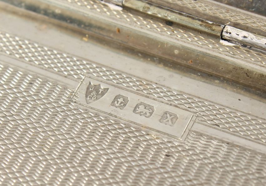 AN ENGINE TURNED SILVER CIGARETTE CASE, with a glamour model with long legs.