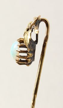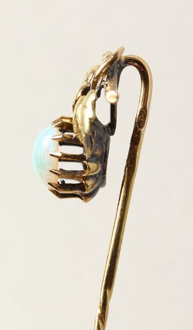 A GOLD AND OPAL STICK PIN.