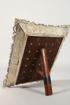 AN ISLAMIC SILVER UPRIGHT PHOTOGRAPH FRAME.