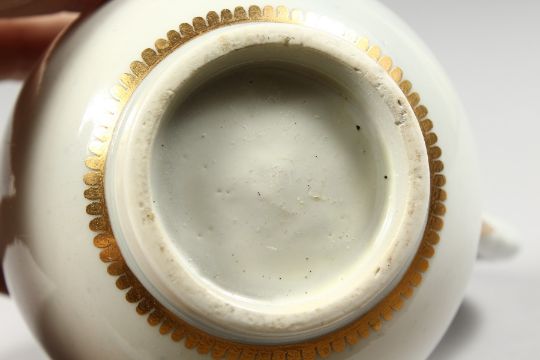 AN 18TH CENTURY WORCESTER SPARROW BEAK JUG decorated with blue and gilt flowers and leaves.