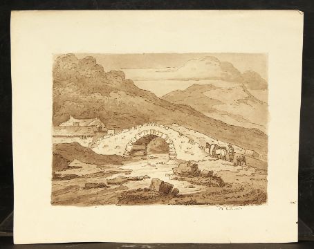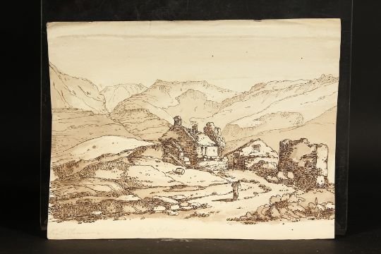 A collection of eleven landscapes, ink & wash and prints, unframed, ranging from 5.5"x 6" up to 8"x 6". (11)