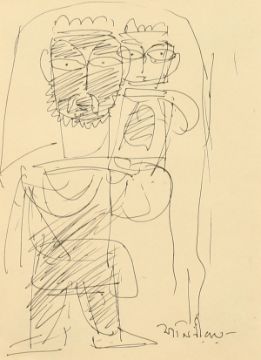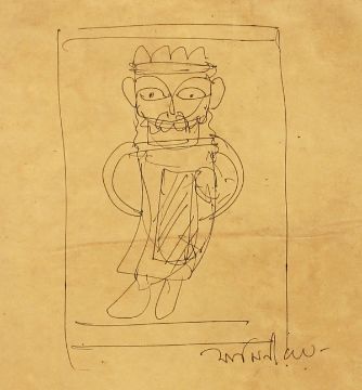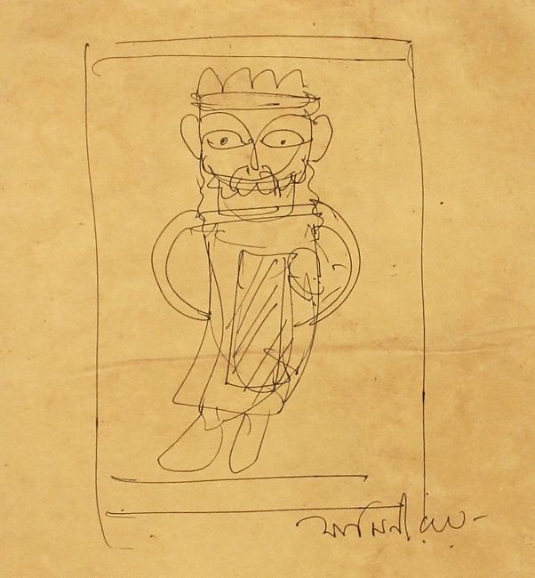 Jamini Roy (1887-1972) Indian, A pair of sketches of figures, ink, signed, each 8" x 6.5", purchased by the vendor's grandfather directly from the artist, (2).