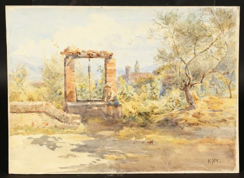 K. McCrackin, 'An Idle Moment', watercolour, inscribed verso, unframed, 10.5" x 14.5".