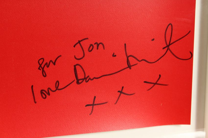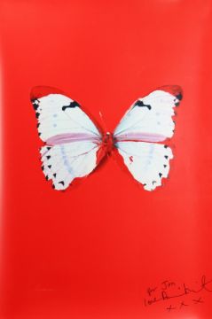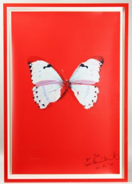 Damien Hirst, (b.1965), 'Untitled (Red Butterfly)', framed print, signed and inscribed 'for Jon love Damien Hirst X X X', numbered on label verso 'Edition 57/70', 39" x 26".