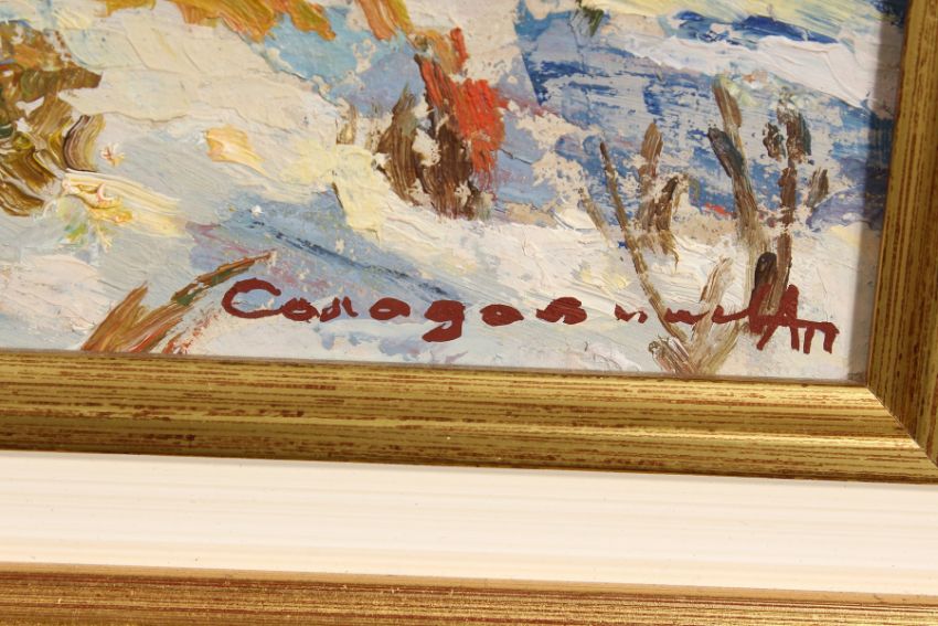 Alexei Solodovnikov (b.1928) Russian, 'Autumn Snow', signed oil on board, 10.5" x 15.3", 27x39cm.