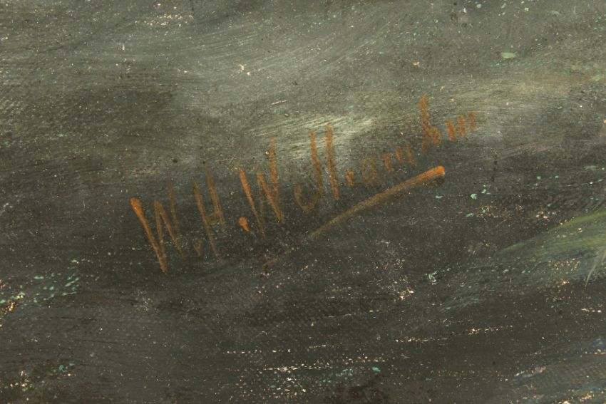 William Henry Williamson (1820-1883) British, fishing boats leaving port in heavy weather, oil on canvas, signed, 30" x 50".