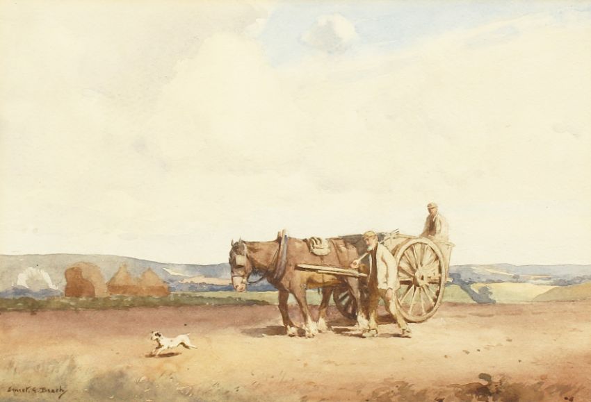 Ernest George Beach (1865-1943) British, Figures with a horse and cart in the landscape, watercolour, signed, 9" x 14".