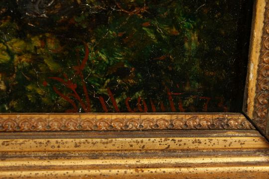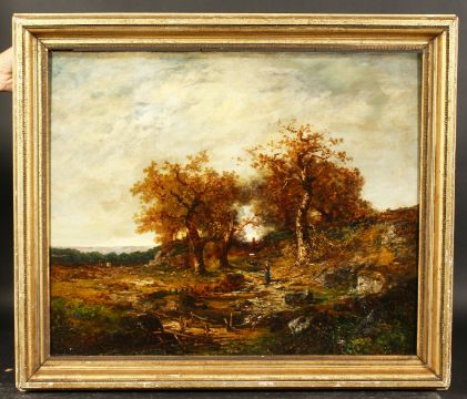 Francois Visconti (19th century) French, A Barbizon scene with a figure in the foreground, oil on panel, 21" x 26".