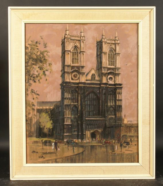 Aubrey Sykes (1910-1995) British, 'Westminster Abbey', a view of the Western Facade, Pastel, signed and inscribed verso, 27" x 21", Provenance: The Mall Galleries.