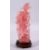 A CHINESE CARVED ROSE QUARTZ FIGURE OF GUANYIN, stood holding a bouquet of flora, on a carved wooden base, 23cm high.