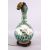 A CHINESE FAMILLE VERTE PORCELAIN GARLIC HEAD FORMED VASE / LAMP - the vase with panel decoration depicting lion dogs / kylin amongst waves, with smaller panels of flora and landscapes, with a green floral and butterfly ground, fitted for lamp, with a wooden carved base, 44cm high.