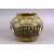 A GOOD EARLY ISLAMIC POTTERY CALLIGRAPHIC VASE, with a green / brown glaze with bands of calligraphy, and floral motif border, 14cm high x 17cm wide.