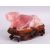 A CHINESE CARVED ROSE QUARTZ FIGURE OF A RECUMBENT OXEN, in a led position upon a carved hardwood base. 17cm wide.