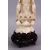 A LARGE 19TH CENTURY CHINESE CARVED IVORY FIGURE OF SEATED GUANYIN, seated upon carved lotus, in prayer, holding prayer beads, on a carved hardwood stand, 31cm high.