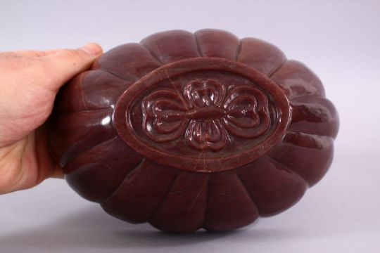 A CARVED HARDSTONE / AGATE MOULDED FORM BOWL, 20cm