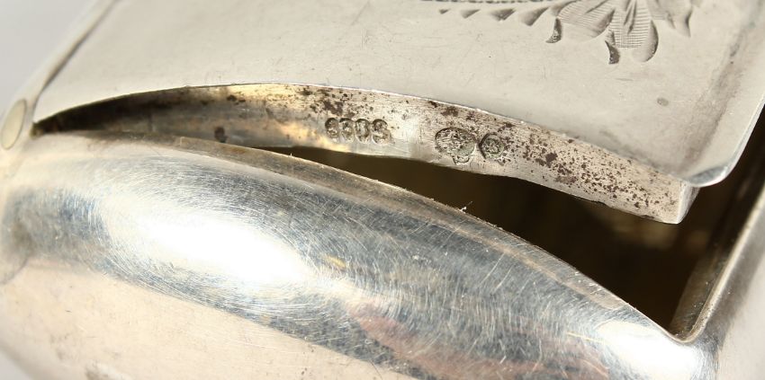 A CONTINENTAL SILVER DOMED TOP SNUFF BOX with engraved top.