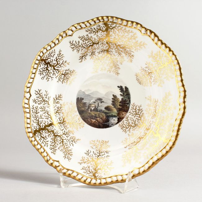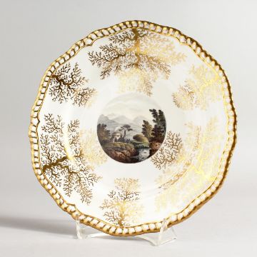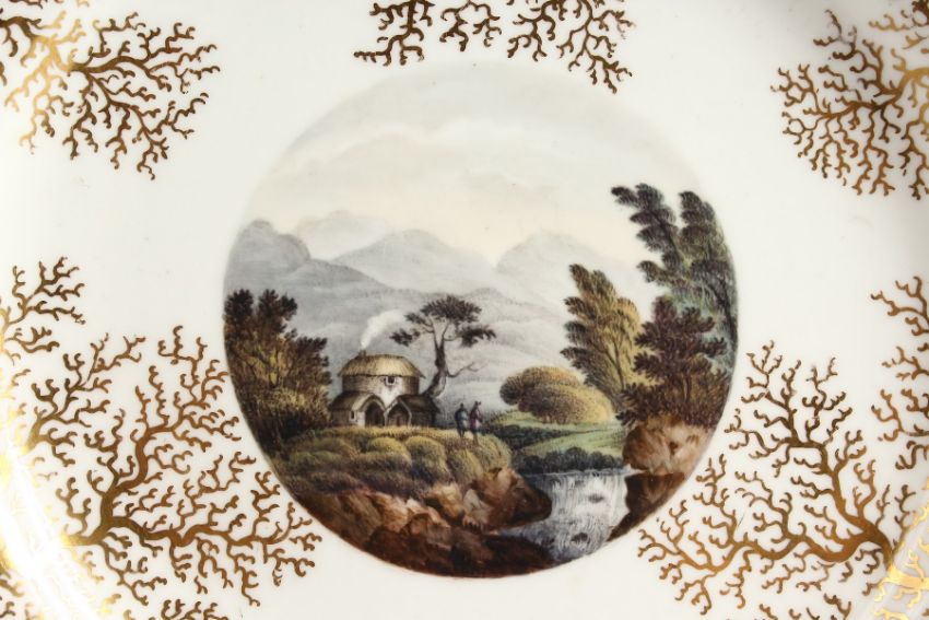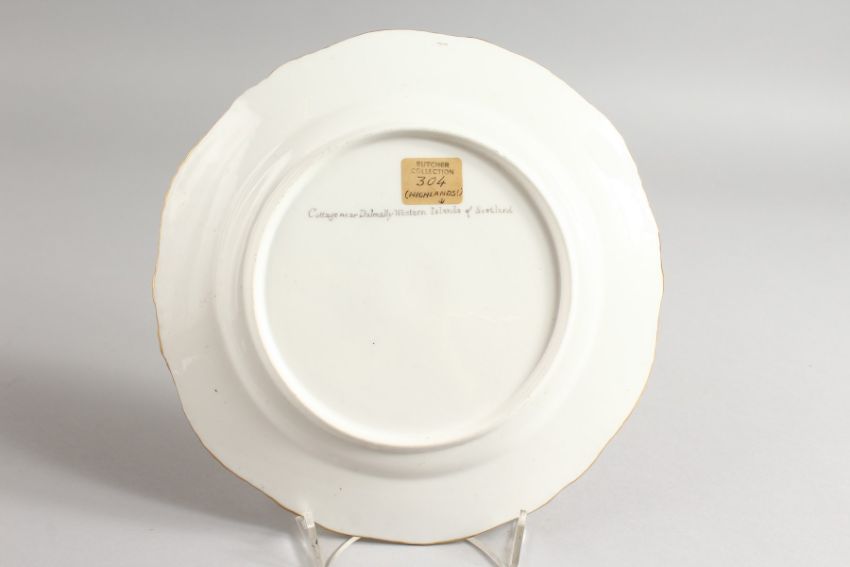 A WORCESTER FLIGHT BARR AND BARR PLATE painted with a Cottage near Dalmally, Western Isles of Scotland, early 19th Century.