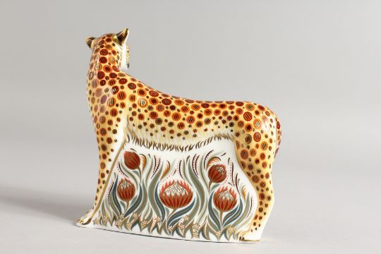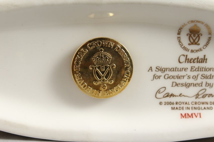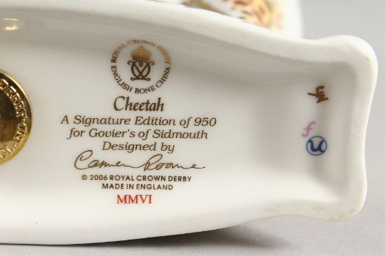 A ROYAL CROWN DERBY paperweight of the Cheetah, dated 2006, signature edition of 950.