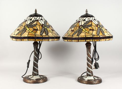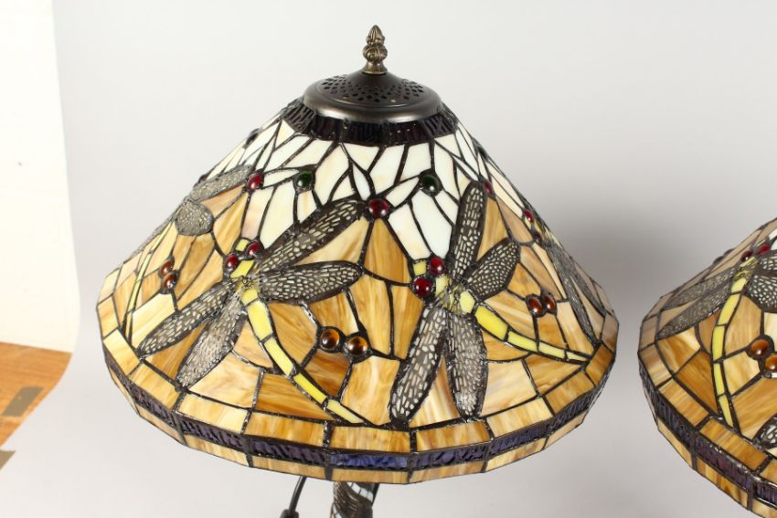A GOOD PAIR OF DRAGONFLY LAMPS in the Tiffany style.
