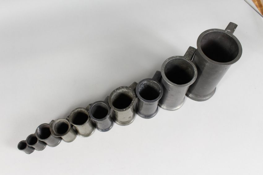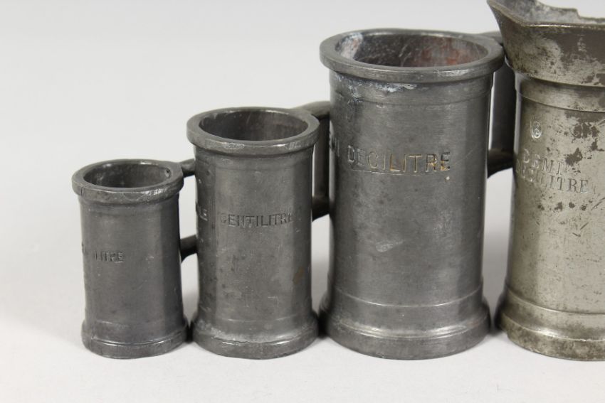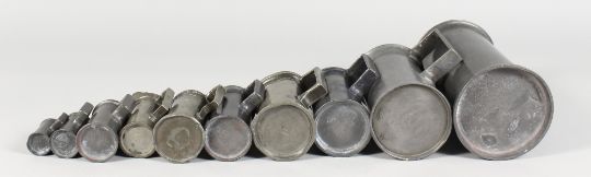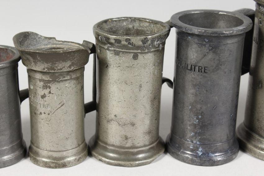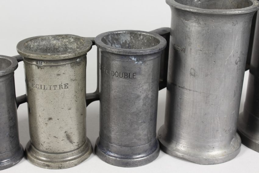 TEN VARIOUS FRENCH PEWTER MEASURES.