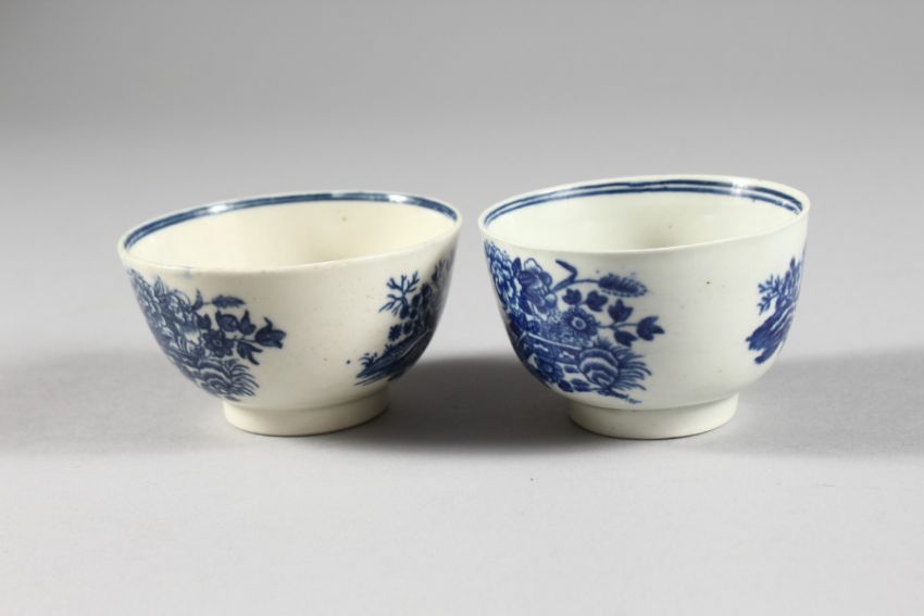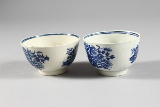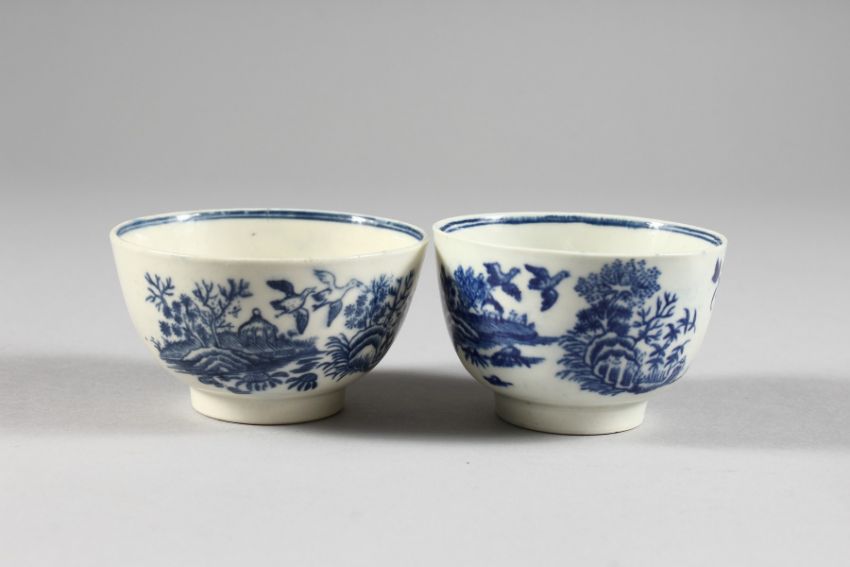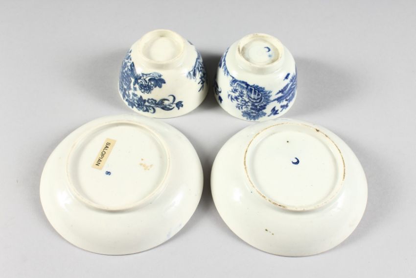 A SALOPIAN BLUE AND WHITE TEA BOWL AND SAUCER and A CAUGHLEY BLUE AND WHITE TEA BOWL AND SAUCER.