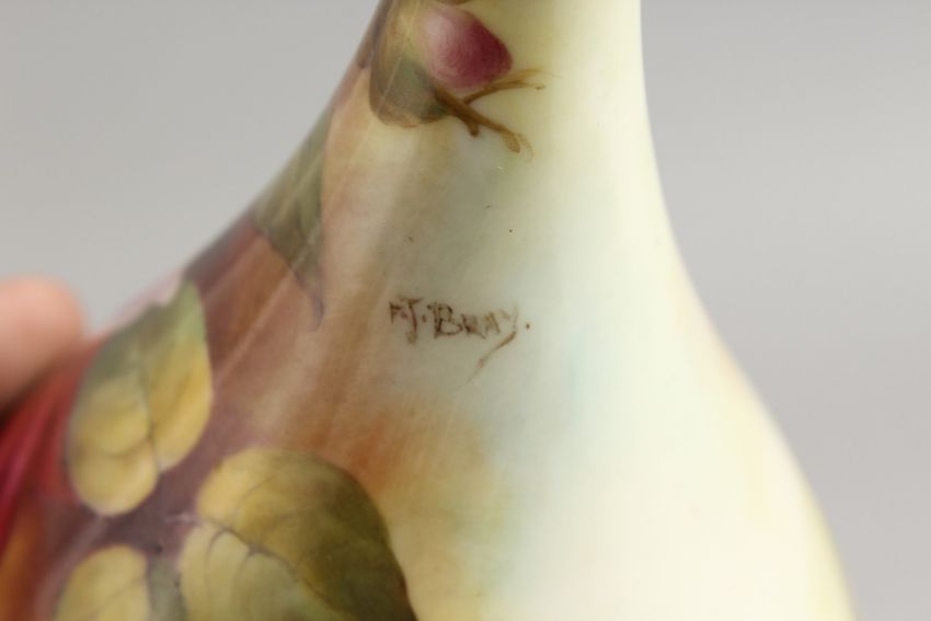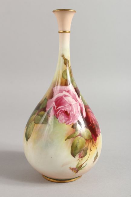 A ROYAL WORCESTER FINE BOTTLE VASE painted with Hadley style roses signed F. J. Bray, date code for 1912.