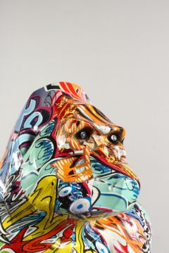A GRAFFITI MODEL OF A GORILLA.