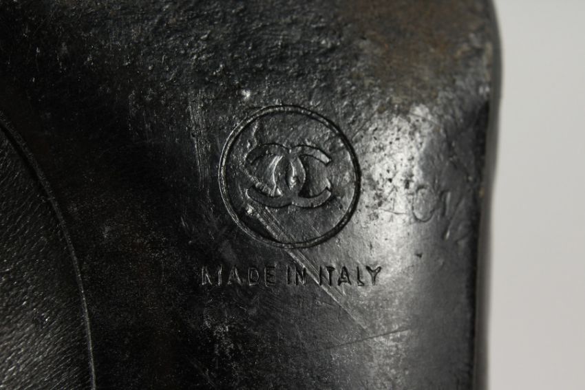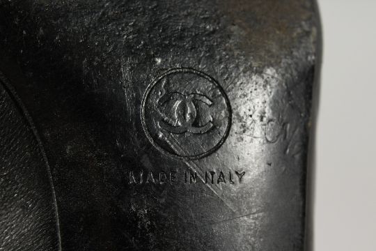 A PAIR OF CHANEL, SIZE 40, BLACK LEATHER SHOES and A PAIR OF TWO-COLOUR SHOES.