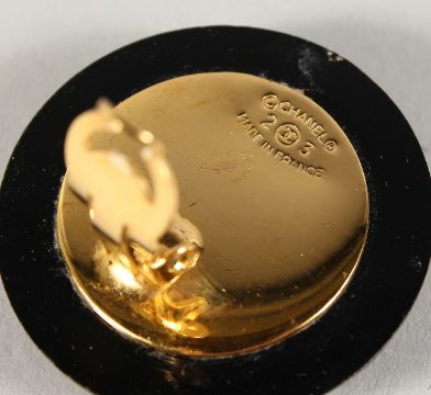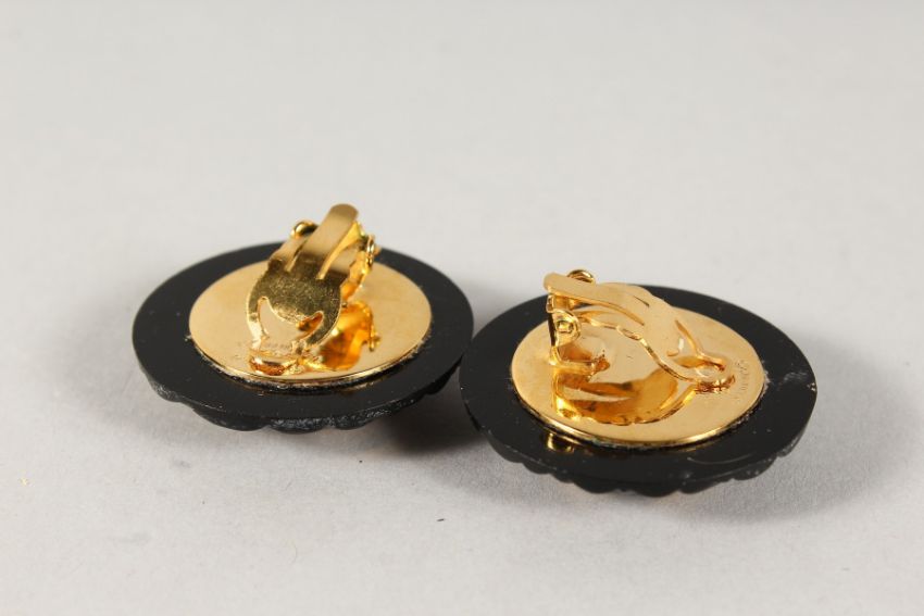 A PAIR OF CHANEL DOUBLE C GILT AND BLACK EARRINGS, in a Chanel box.