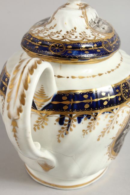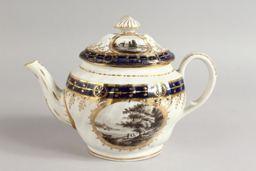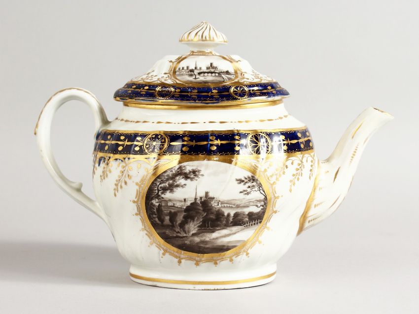 A CHAMBERLAIN WORCESTER RARE TEAPOT AND COVER painted with named scenes, two of Worcester, Near Cornwall and Bisham Abbey, Berkshire.
