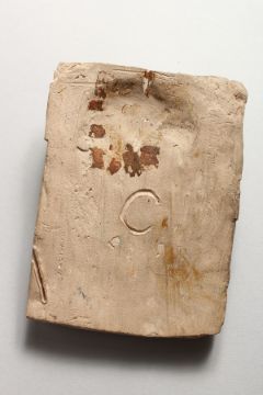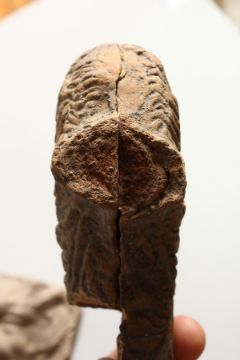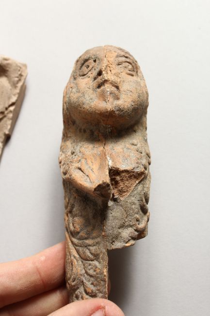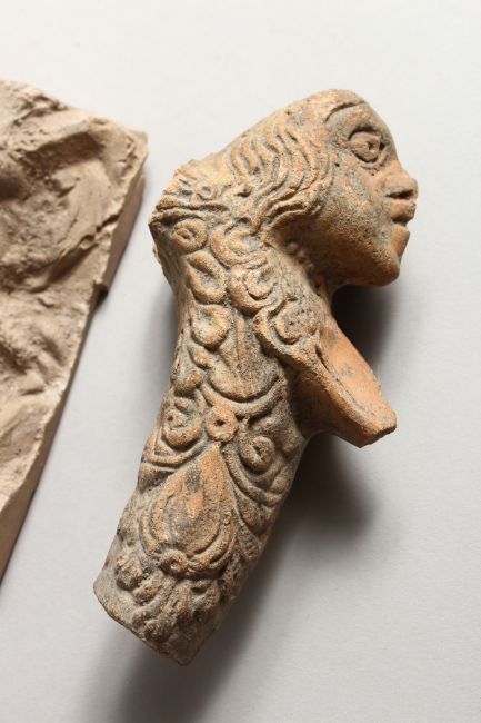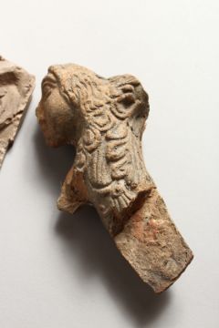 TWO SMALL MOULDED POTTERY "ANTIQUITIES", one as a face, the other a bust.