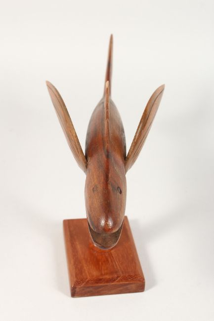 A PITCAIRN ISLAND CARVED WOOD FLYING FISH ON STAND, unsigned.