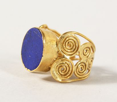 AN 18CT GOLD LAPIS RING.