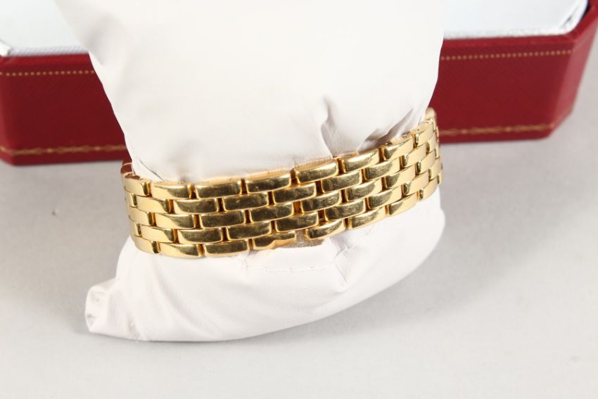 A CARTIER GENTLEMAN'S 18CT SANTOS MID SIZE WRISTWATCH, with diamond inset bezel, date aperture, original 18ct gold bracelet strap and Cartier red leather box.