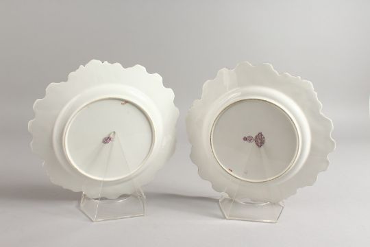 A ROYAL WORCESTER PAIR OF PLATES of silver shape, each decorated with enamels and raised gilding with hazelnuts, strawberries and redcurrants by William Hale, WH monogram inside footrims, puce back stamp, date code for 1890 and retailer's mark for F. & C. Osler, 100 Oxford Street, London.