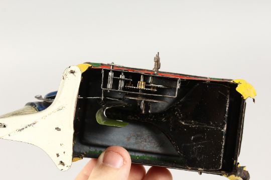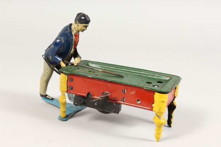A SMALL GERMAN TIN PLATE CLOCKWORK BAR BILLIARD GAME.
