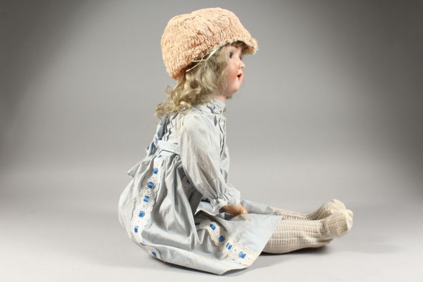 A LATE 19TH CENTURY/EARLY 20TH CENTURY PORCELAIN HEADED DOLL.