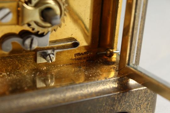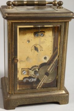 A 19TH CENTURY FRENCH BRASS TIMEPIECE.