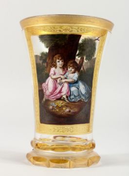A VERY GOOD VIENNA GOBLET, painted panel of two young girls.