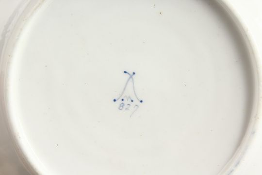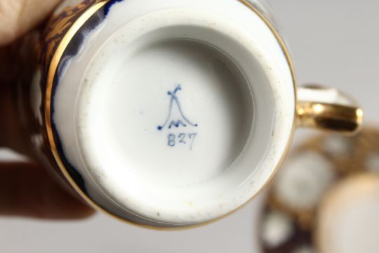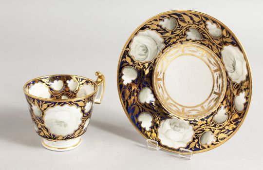 A MINTON RICH BLUE CUP AND SAUCER painted with roses.