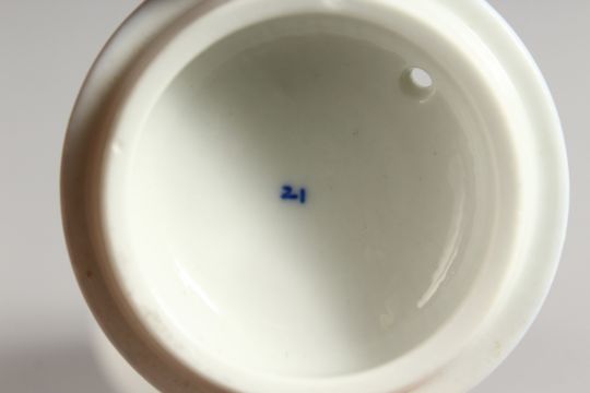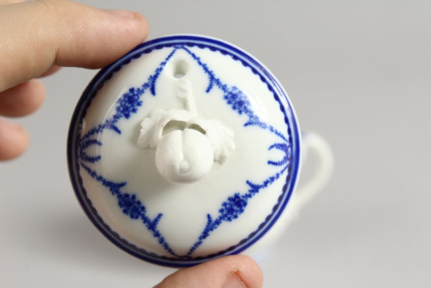 A LATE 18TH CENTURY TOURNAY CUSTARD CUP AND COVER painted with two dentil bands and stippled swags.