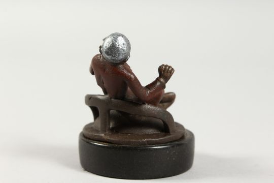 A COLD CAST BRONZE CIRCULAR MONKEY.
