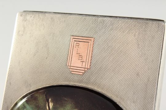 AN ENGINE TURNED SILVER CIGARETTE CASE with oval nude.