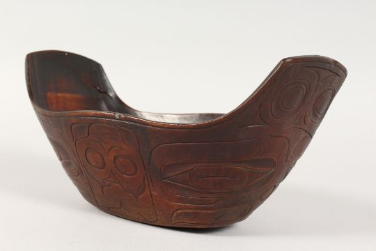 A CARVED WOOD FOOD BOWL, possibly Maori.